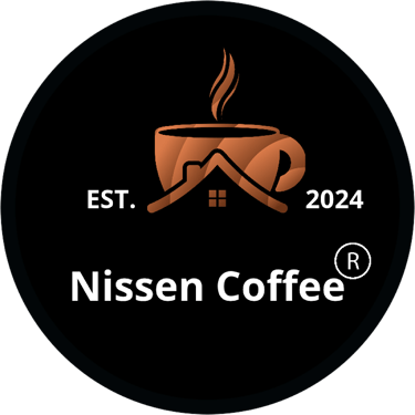 The Nissen Coffee logo embodies authenticity and craftsmanship, a warm welcome that feels familiar, like that first comforting sip in the morning. Its circular shape draws you in, creating a sense of completeness and satisfaction that mirrors the experience of savoring perfectly brewed coffee. At its heart sits a stylized steaming cup above a small house, simple yet evocative, symbolizing home, community, and connection. The house represents the growers and the community behind every harvest, while the rising steam evokes the comforting aroma that brings people together.
